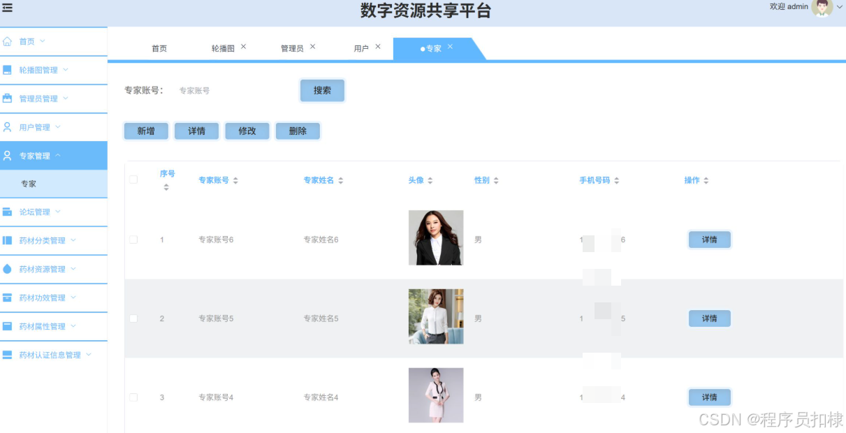 专家咨询:新增、查看、修改、删除专家咨询内容。
