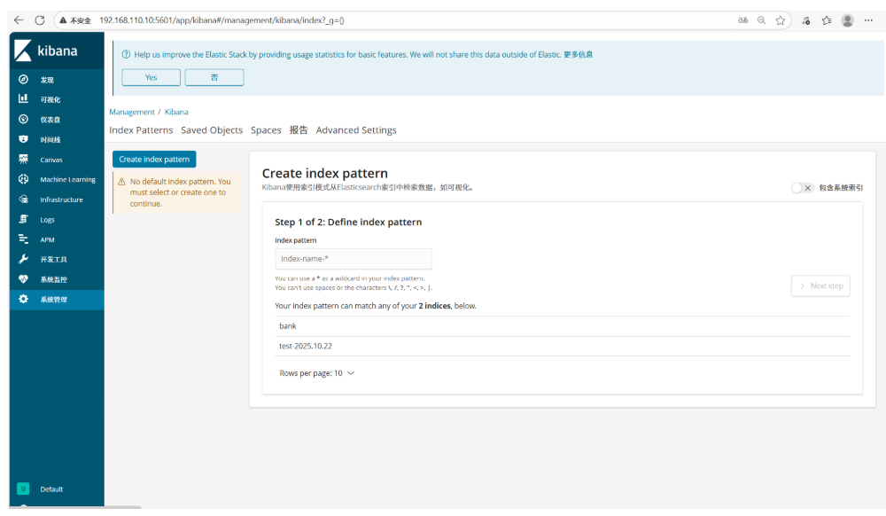 再次通过浏览器访问 http://kibana服务器IP:5601