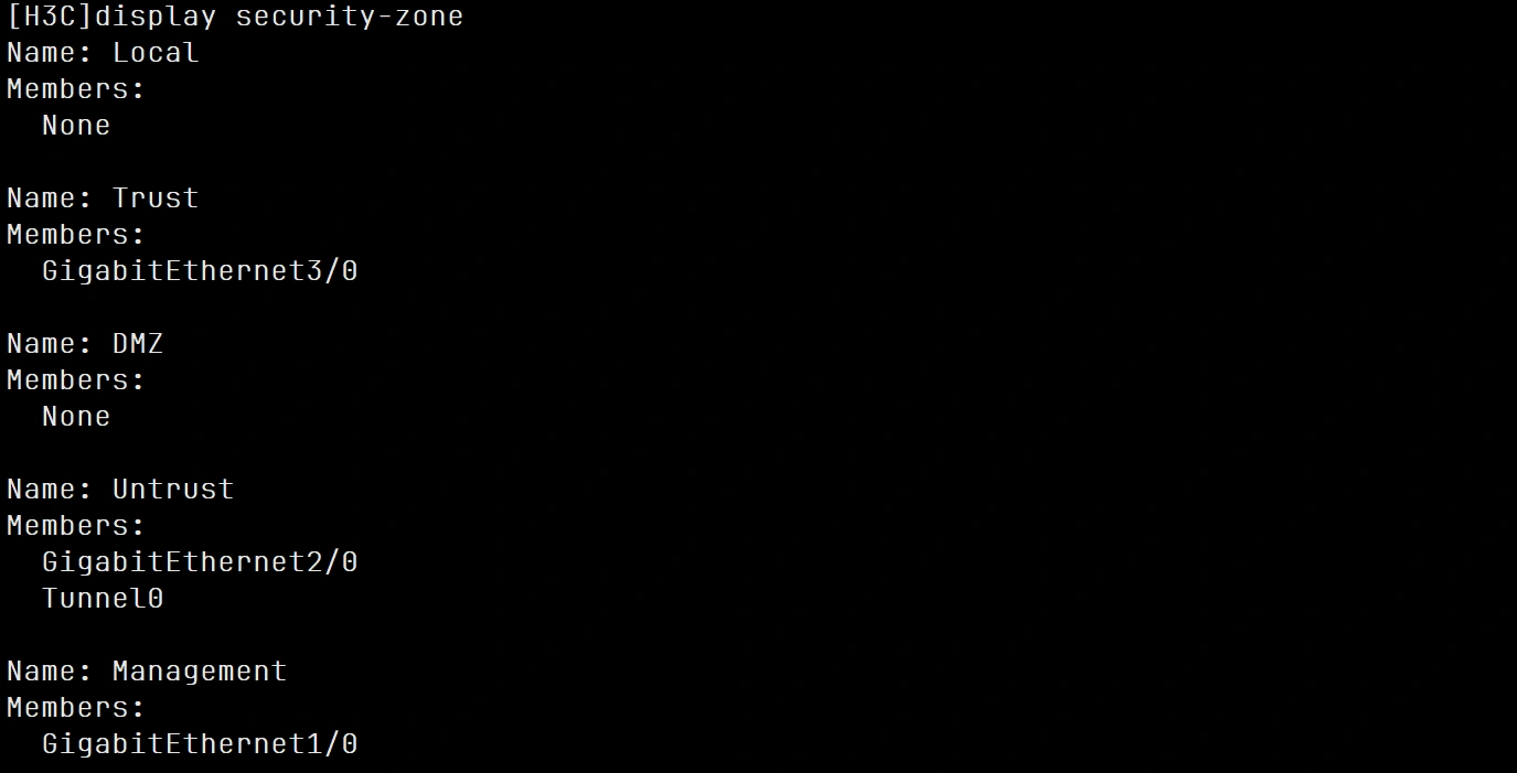 [H3C-security-zone-Untrust]import interface Tunnel 0