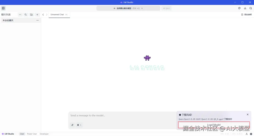 第一次使用LM Studio时,本地是没有模型的,需要在LM Studio中手动下载。