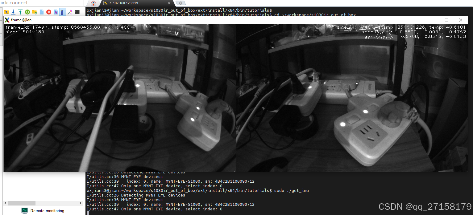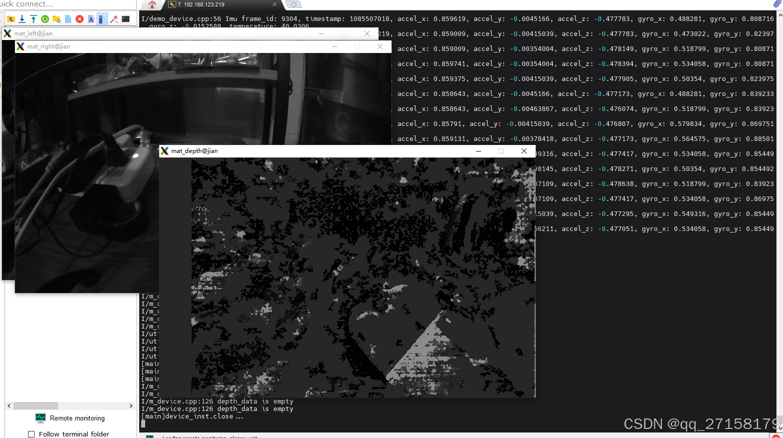 获取到了左右摄像头的图像、深度图像、和IMU数据。