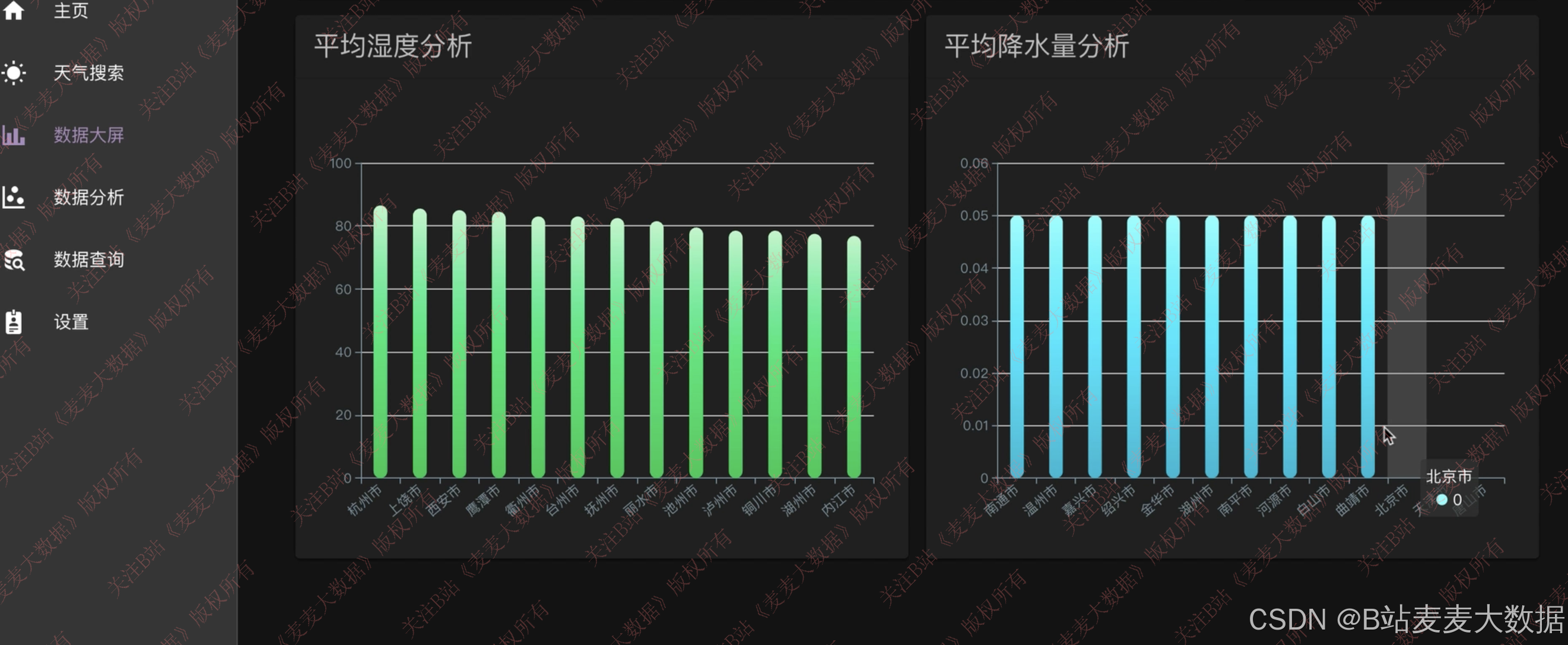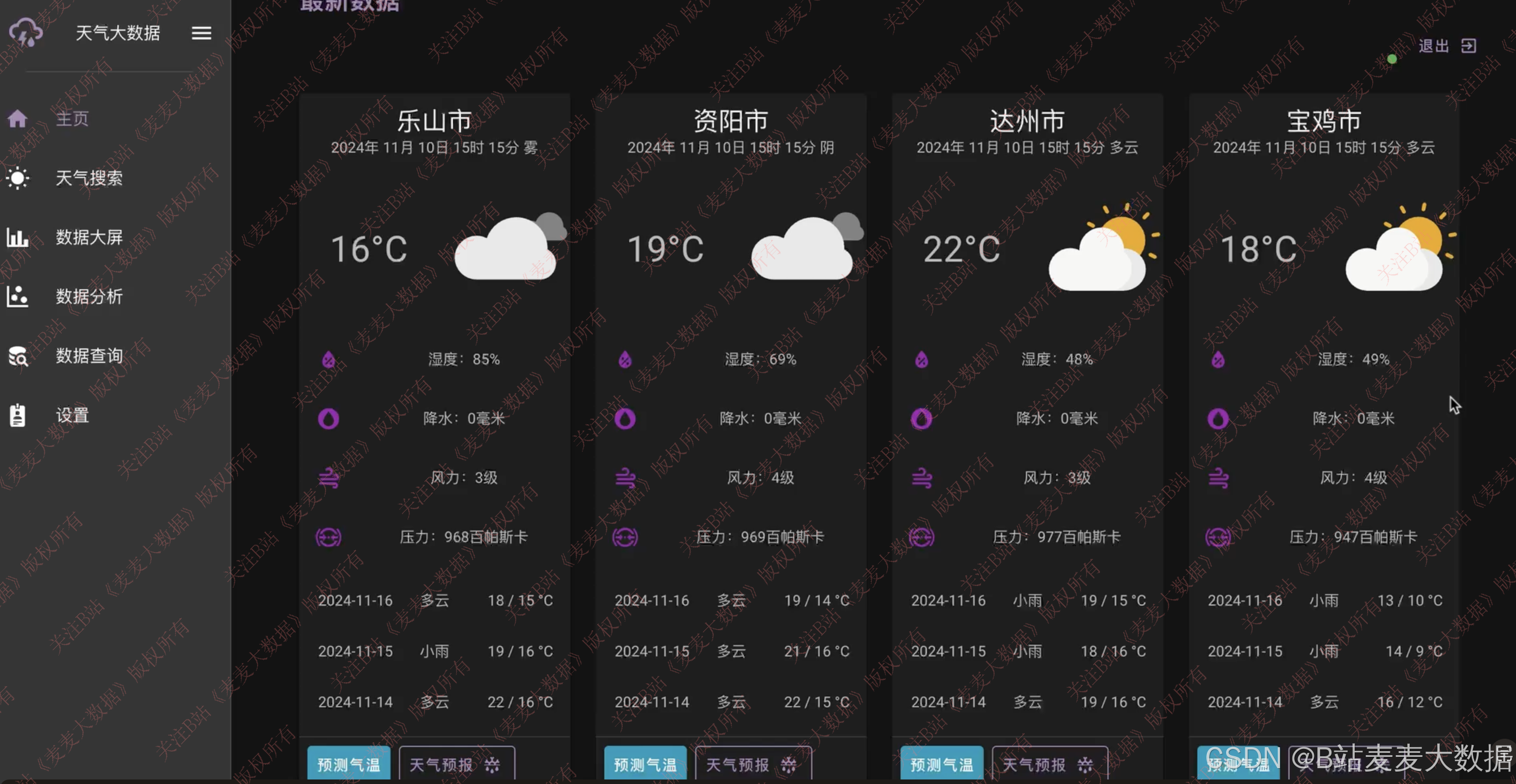 vue+flask天气预测可视化系统大数据+机器学习+管理端+爬虫+超酷界面+顶级可视化水平