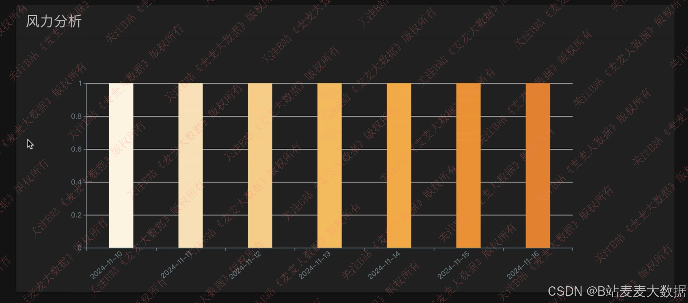 - 随意选择城市可视化分析、分析风力、高低气温等