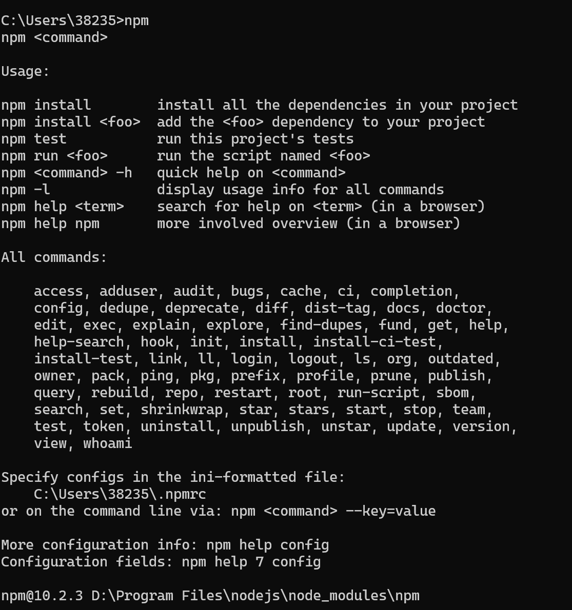 2、确定nodejs安装后npm是否可以用
