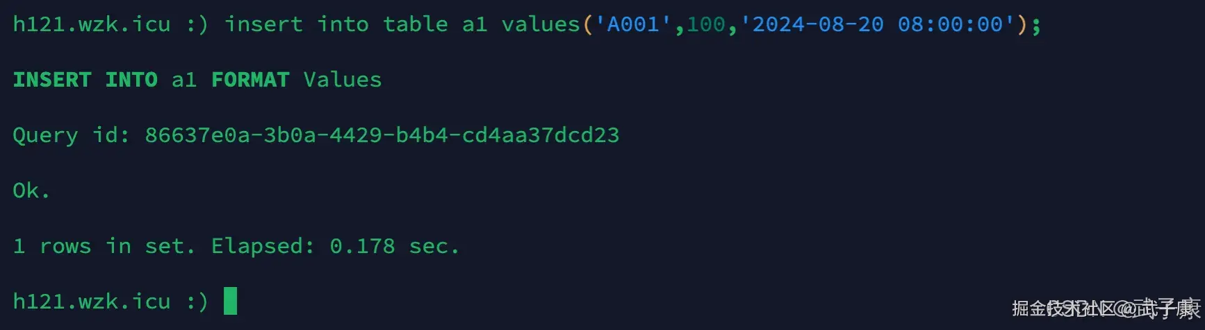 insert into table a1 values('A002',200,'2024-08-21 08:00:00');