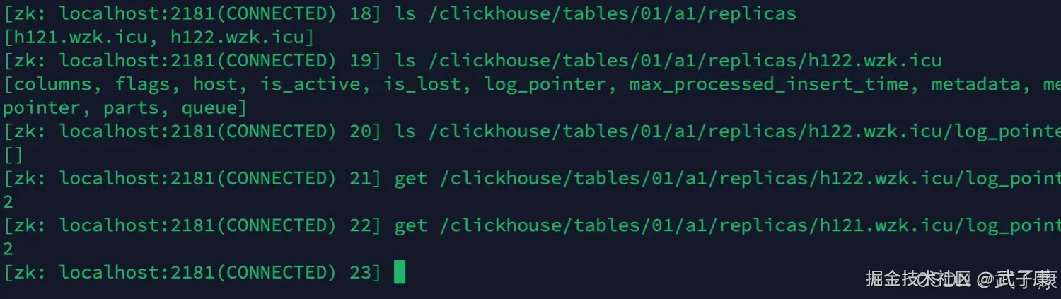 [zk: localhost:2181(CONNECTED) 13] get /clickhouse/tables/01/a1/log/log-0000000000