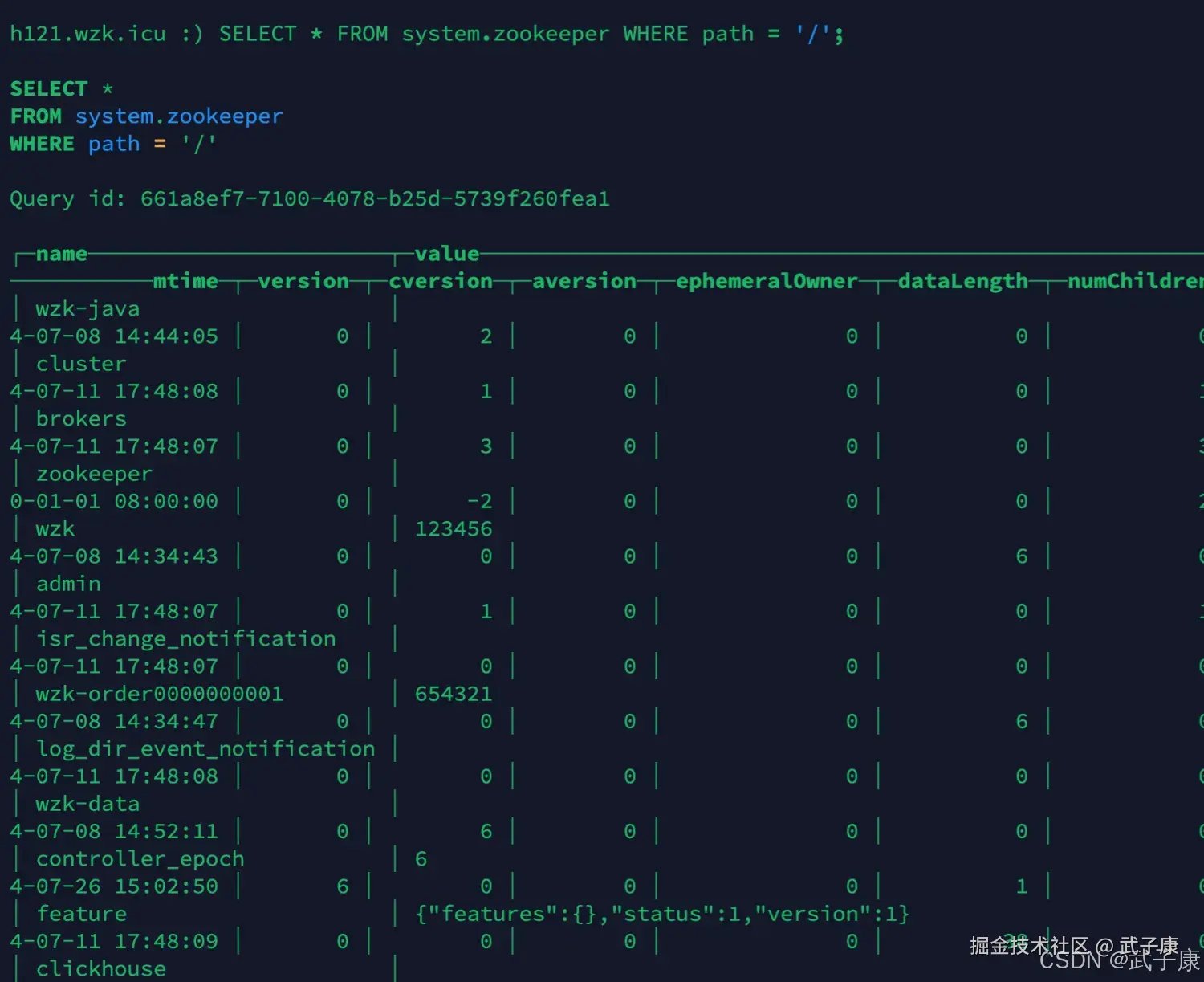 接着执行SQL检查是否成功链接到了 ZooKeeper