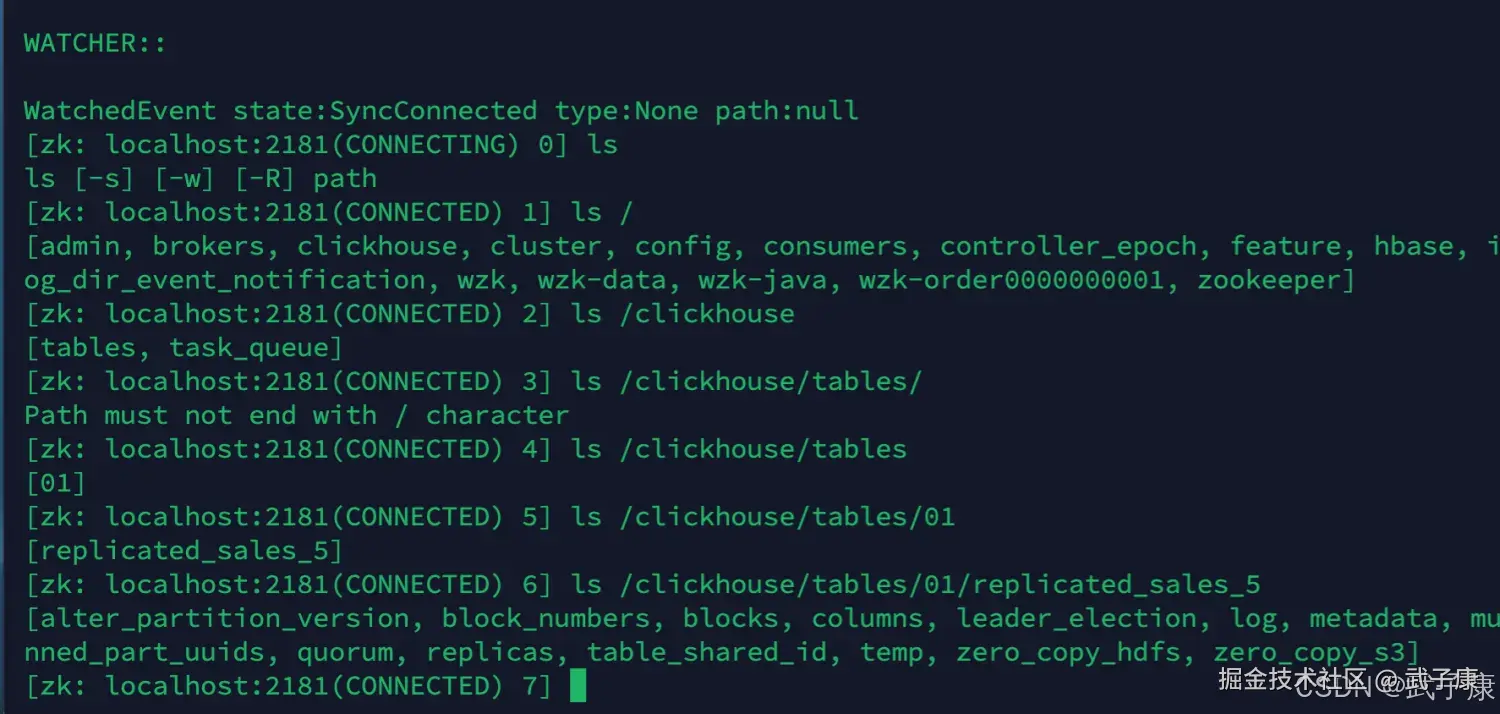 [zk: localhost:2181(CONNECTED) 7] ls /clickhouse/tables/01/replicated_sales_5