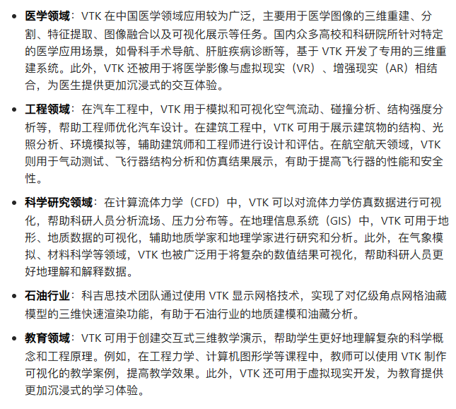 可视化工具包(VTK)是一款用于处理和显示科学数据的开源软件。它配备了先进的3D渲染工具、一套用于3D交互的控件,以及强大的2D绘图功能。 VTK是Kitware提供的支持的软件开发平台之一。该平台被广泛应用于全球的商业领域,同时也被用于研究和开发工作。有关更多示例,請参阅VTK的实际应用案例。