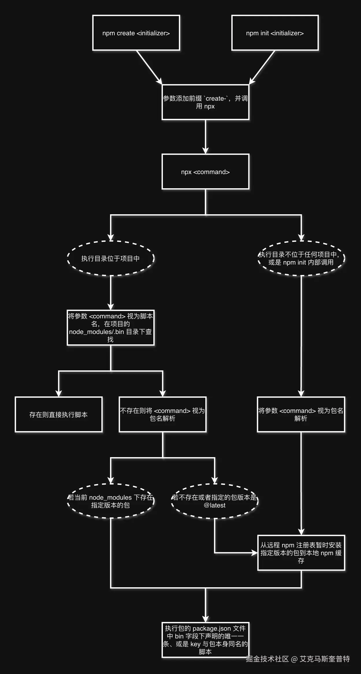 下面这张图清晰展示了 npx 命令的具体执行流程: