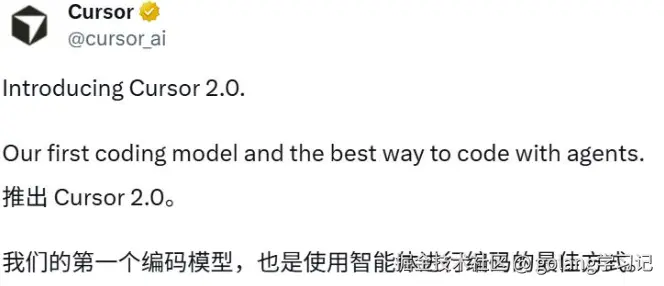 cursor2.0终于在10月末来了,宣布cursor正式进入2.0时代!