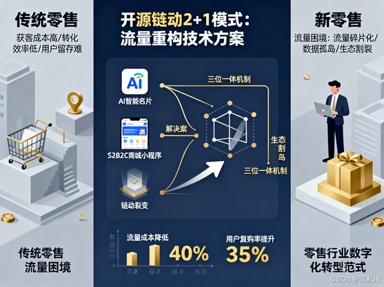 关键词:零售流量运营;开源链动2+1模式;AI智能名片;S2B2C商城小程序;新零售生态