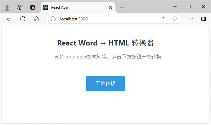 运行上述代码后,将在localhost:3000端口启动 React 应用,此时即可在浏览器中执行 Word 文件转换操作。点击 "开始转换" 按钮,系统将自动下载生成的 HTML 文件。