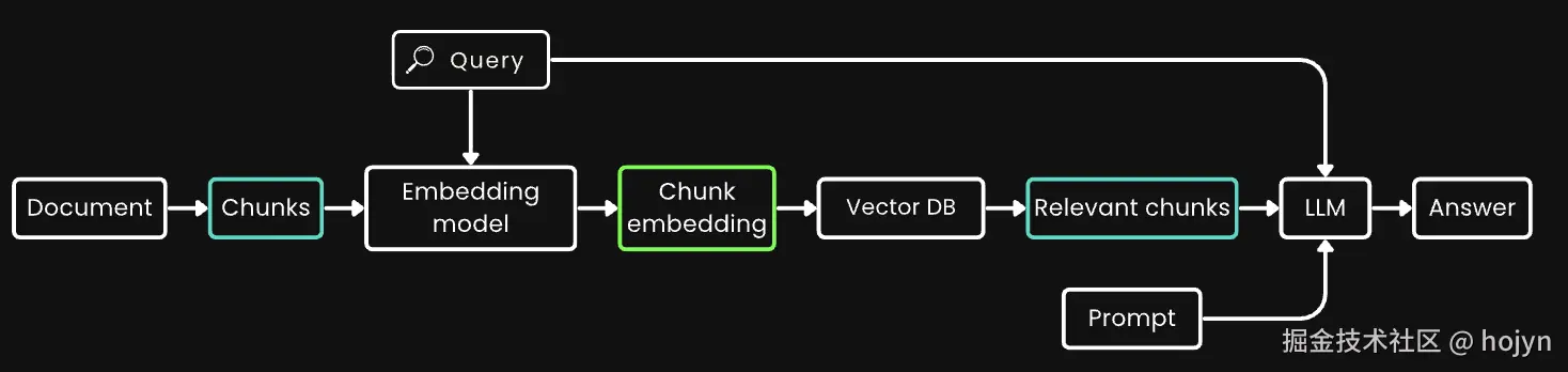 检索增强生成(RAG)是最著名的应用之一,它需要将文档分割成较小的文本块(比如在 512 个 token 以内)。这些文本块通常存储在向量数据库中,其向量表示由文本嵌入模型生成。在运行时,同样的嵌入模型将查询编码为向量表示,然后用于识别相关的存储文本块。这些文本块随后传递给大型语言模型(LLM),后者基于检索到的文本合成对查询的响应。下面是一个RAG的经典架构: