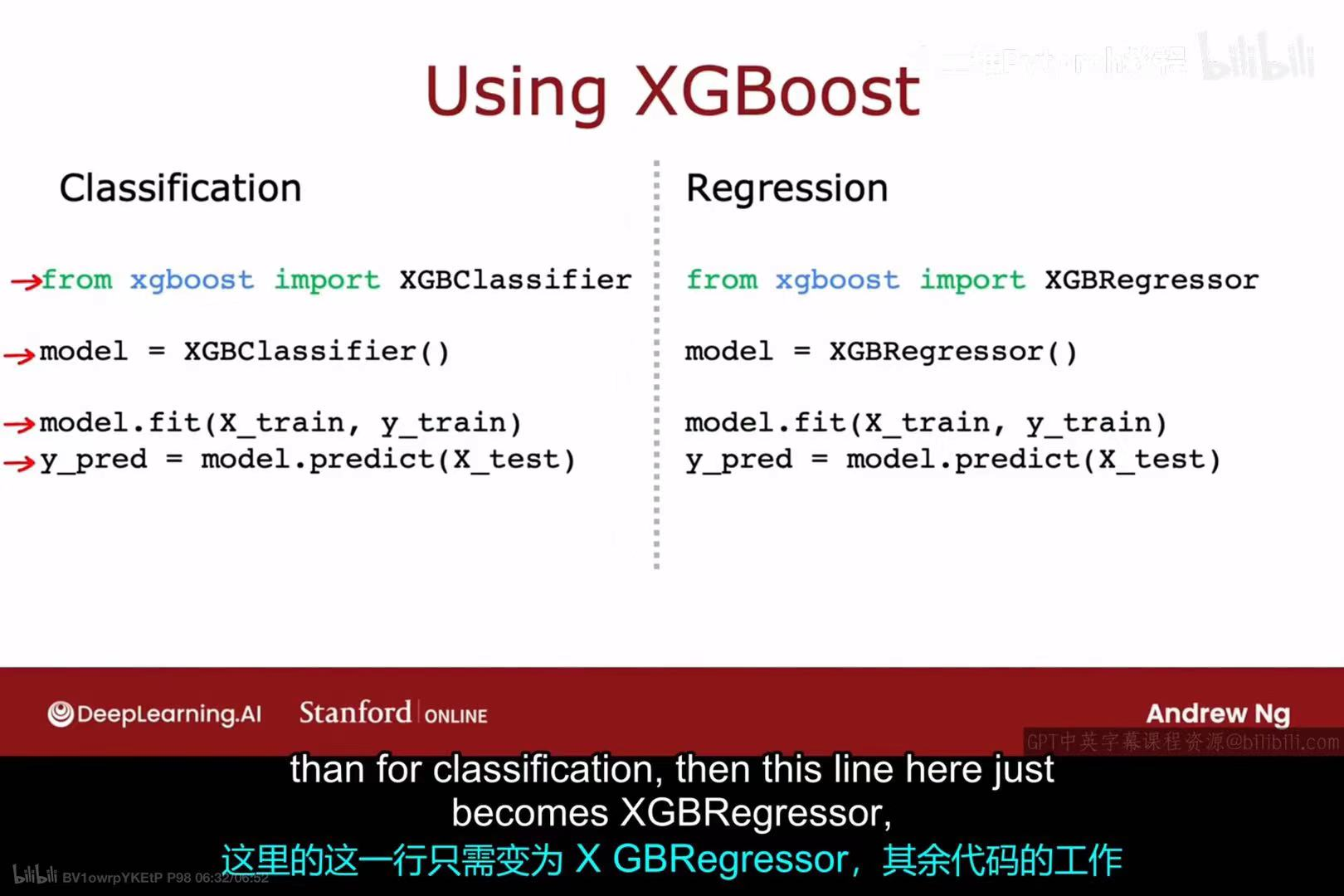 XGBClassifier。 - 回归任务 :使用