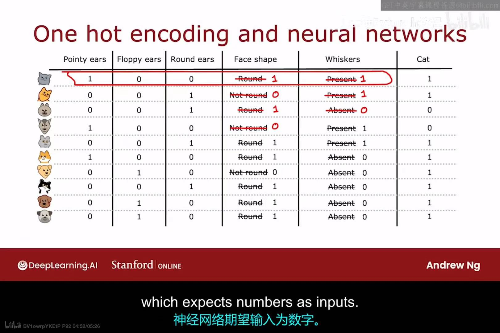 这种将分类数据转换为数值数据的技术不仅适用于决策树,也适用于神经网络等其他多种机器学习模型,因为这些模型通常期望输入是数值形式。通过独热编码,我们可以将所有分类特征(如"Face shape"、"Whiskers")都转换为0和1的表示,从而形成一个完全由数值组成的输入数据集。