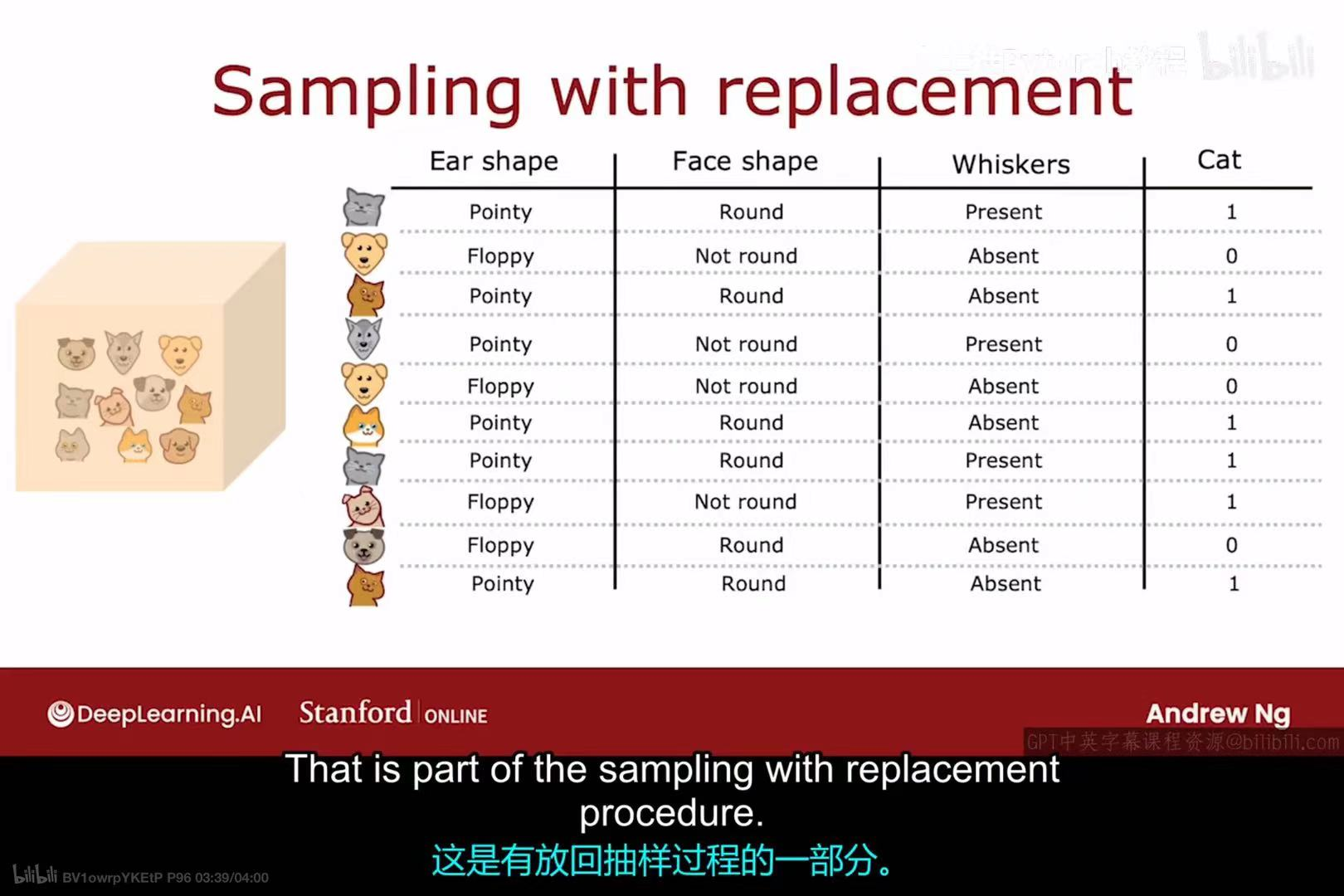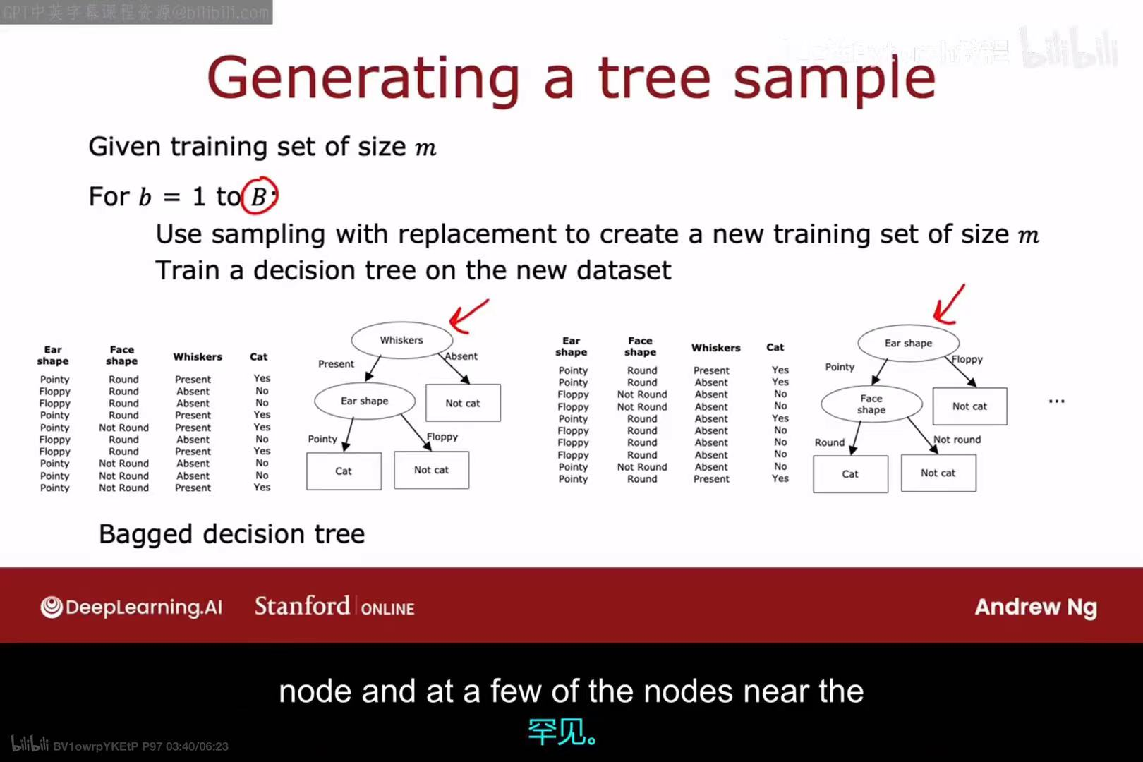 a. 使用有放回抽样,从原始训练集中创建一个新的、大小为m的训练集。