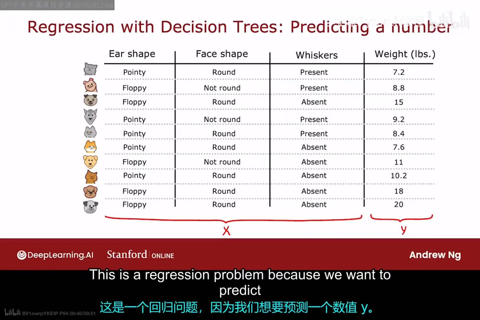 当我们的目标 y 是一个连续数值(如体重)时,这个问题就从分类问题变成了回归问题。