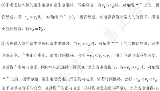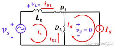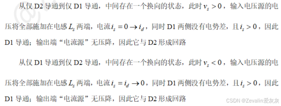 然而,当输入侧的电感感值不为0时,由于电感电流不能突变,它阻碍了的瞬间换向,因此在换向过程中电路将处于第三个状态,此状态下两个二极管均导通