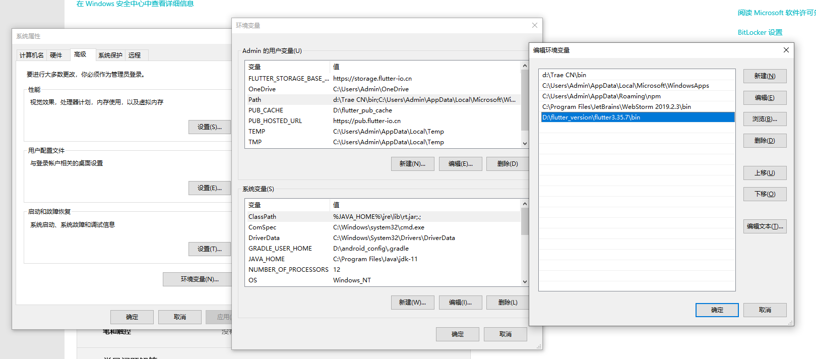 系统环境变量:path中配置的是flutter2.10.5时,引入flutter3.35.7的项目能成功运行,但是执行flutter build apk命令失败。