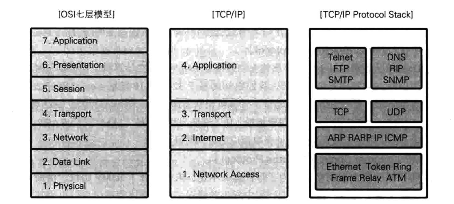 TCP/IP 是世界范围内广泛使用的协议族。虽然它不像 OSI 七层模型那样是一种标准,但业界已经将其视为标准,被称为事实上(De facto)的通信协议。TCP/IP 协议大致分为 4 层,类似于 OSI 七层模型,各层的功能划分也非常明确。TCP/IP 协议各层功能与 OSI 七层模型大体一致,不再赘述。下面对具有代表性的几个协议进行讲解。