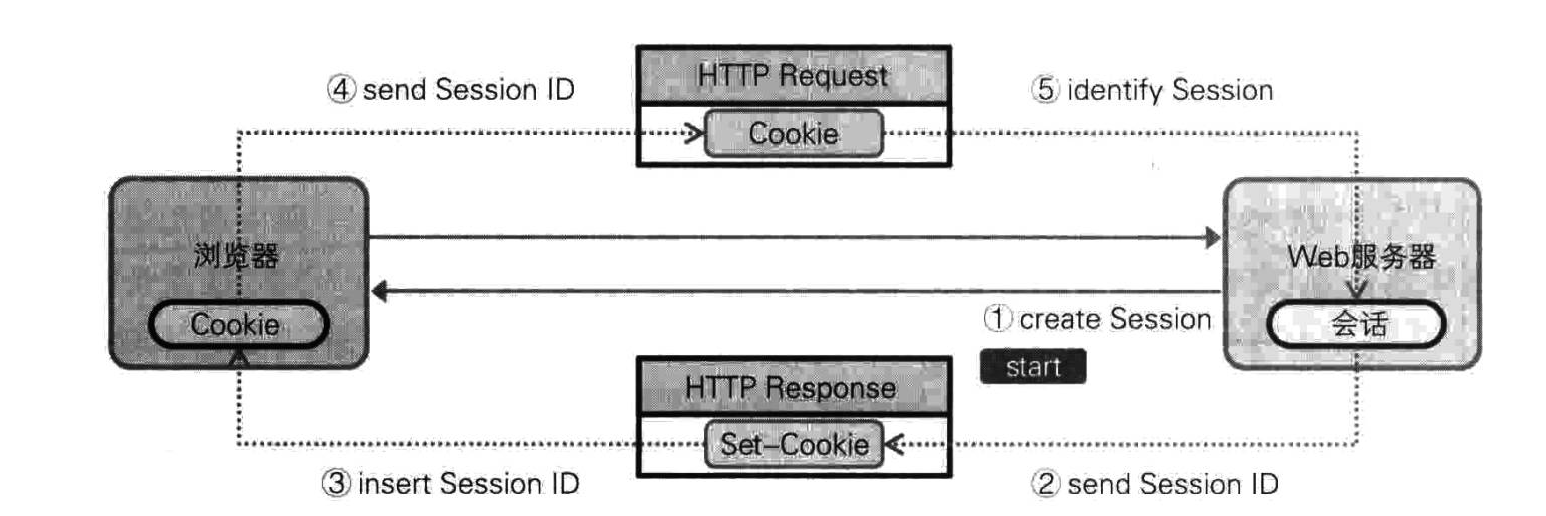 Web 技术提供了向浏览器保存数据的空间,称为 Cookie。Web 发展早期,用户认证信息大都保存在 Cookie 中,但由于存在安全隐患,目前人们只将简单的控制信息、会话 ID 信息保存于此。由于 Cookie 信息包含于 HTTP 协议头信息,所以可以将其用作在客户端与服务器之间传递信息的手段。会话是保存用户信息的 Web 服务器对象。一般而言,用户登录后,用户信息就会保存在会话之中,然后通过 Cookie 将会话 ID(用于标识会话的识别符)传递给浏览器。用户通过浏览器访问购物车时,Web 服务器会使用通过 HTTP 头传递的会话 ID(位于 Cookie)判断是否是认证用户。下面简单讲解基于会话的认证系统。