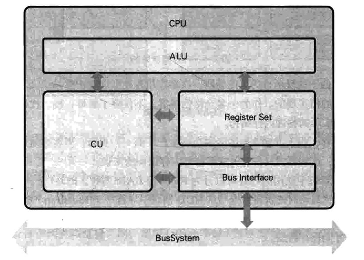 CPU 主要由 ALU(Arithmetic Logic Unit,算术 / 逻辑单元)、CU(Control Unit,控制单元)、寄存器组(Register Set)、总线接口(Bus Interface)组成。此外,为了降低从内存读入数据的代价,CPU 内部也集成了高速缓冲。