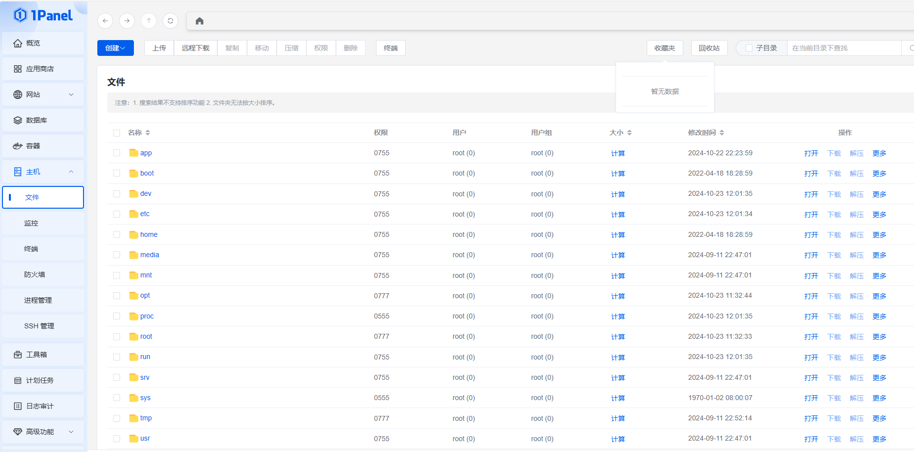 点击主机可以看到支持可视化界面快速实现文件管理,无需命令行,就能进行复制、移动、重命名和删除等常见的操作,从而实现文件的浏览、上传、下载和管理。有效简化了管理流程,提供了快捷高效的体验。