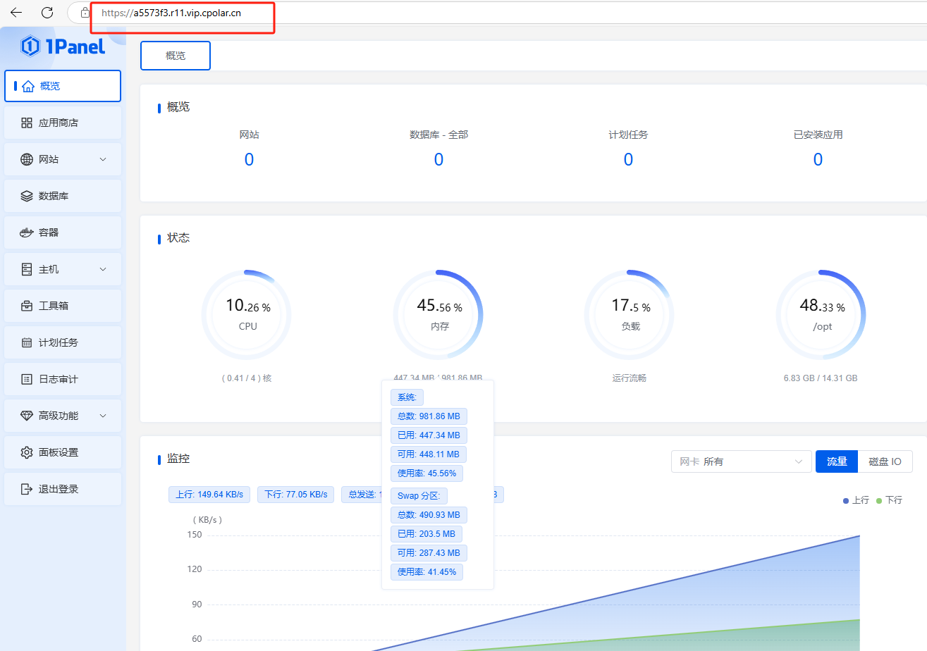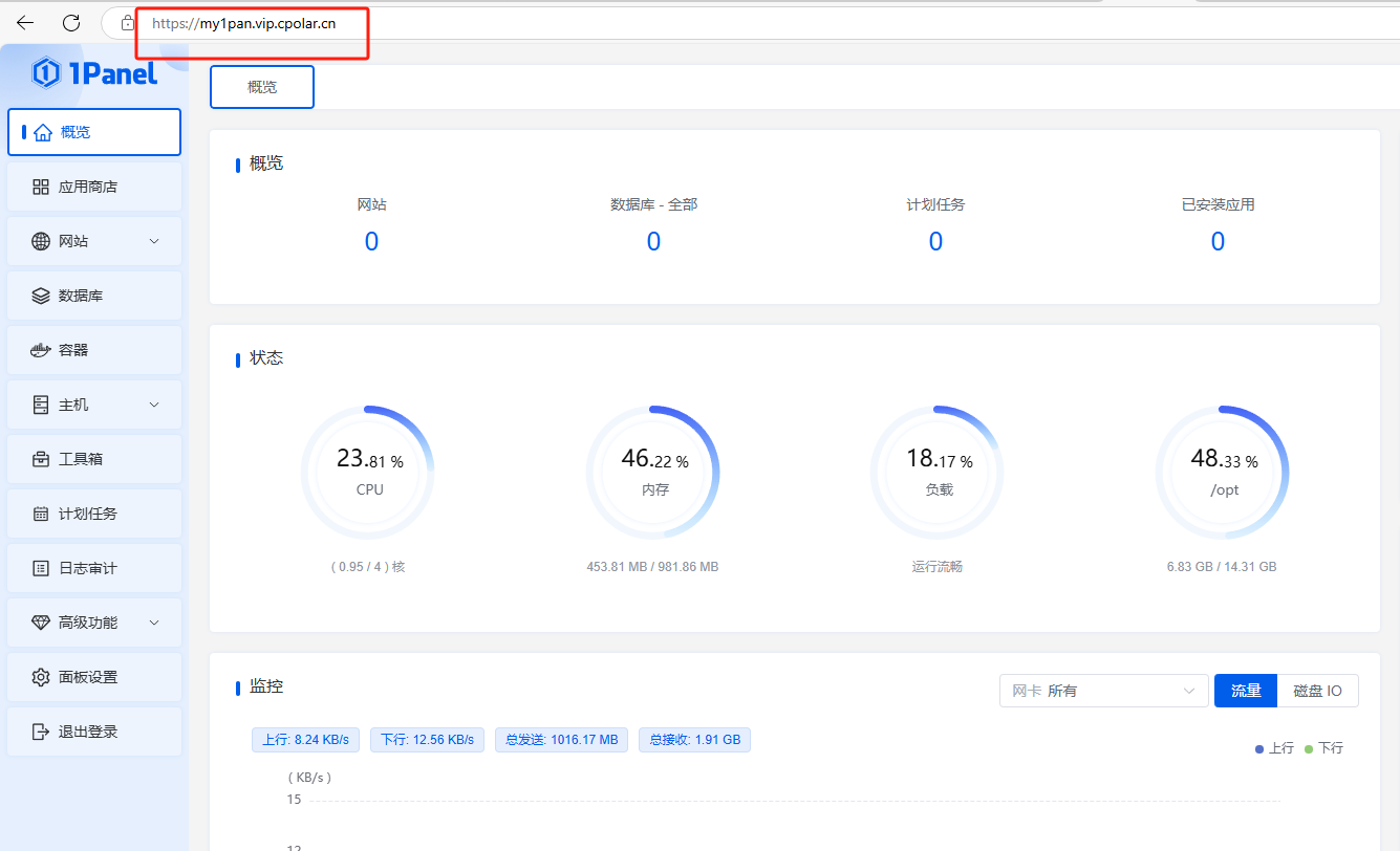 此时,我们已经成功在本地的CasaOS香橙派主机中部署了1panel面板,但仅能在本地局域网中使用,有一定局限性。如果想在出差时也能远程访问家中的1panel面板,来查看服务器情况或是管理容器该怎么办呢?