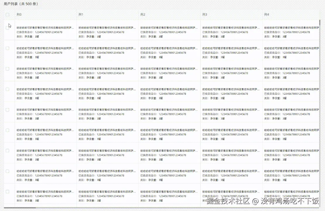 将项目中的 el-table-v2 替换为 vxe-table,并在保持单元格渲染优化的基础上,滚动卡顿问题得到了彻底解决,用户体验显著提升。