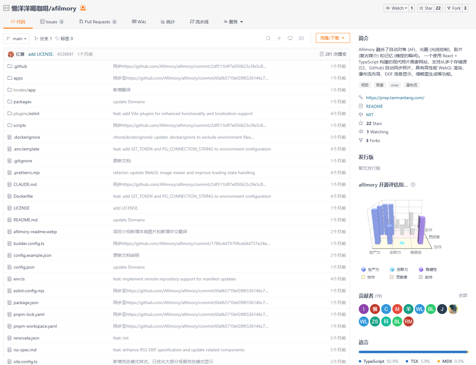 开源工具链呈现精细化特征:星甘特聚焦专业级项目管理,即时通讯应用强化社交功能集成,而Afilmory则通过技术栈升级重塑数字摄影体验。值得注意的是,大屏展示模板以26069星成为历史积累最高的项目,反映数据可视化需求在企业端的持续爆发。
