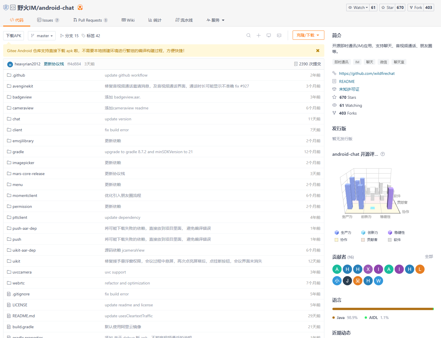 项目描述:开源即时通讯应用,支持语音、视频通话及朋友圈等功能。