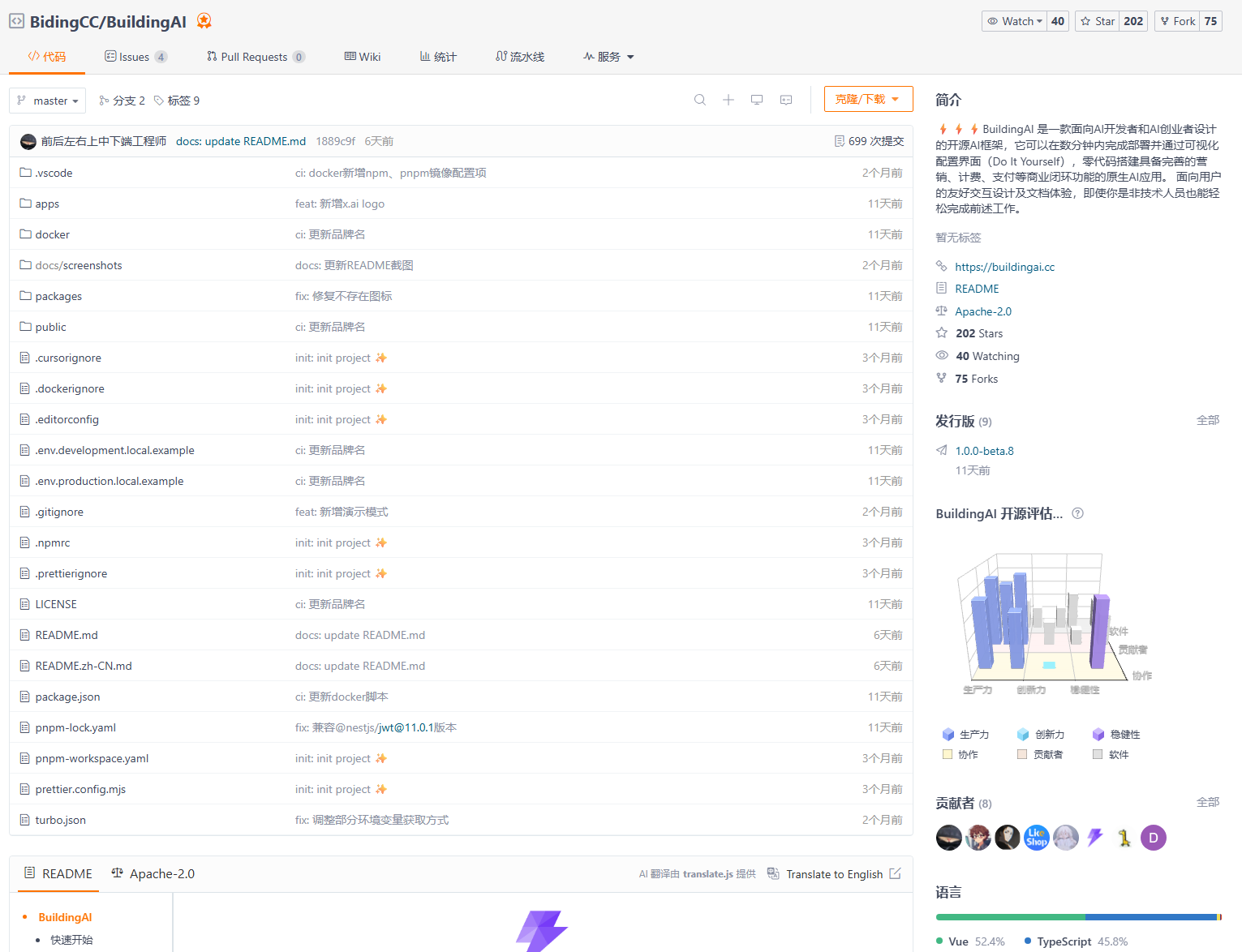 项目描述:BuildingAI是一款专为AI开发者和创业者设计的开源AI框架,它能在几分钟内完成部署并通过可视化配置界面(DIY)实现零代码构建,同时内置完善的营销、计费、支付等商业闭环功能,其面向用户的友好交互设计及文档体验确保即使是非技术人员也能轻松完成上述工作。
