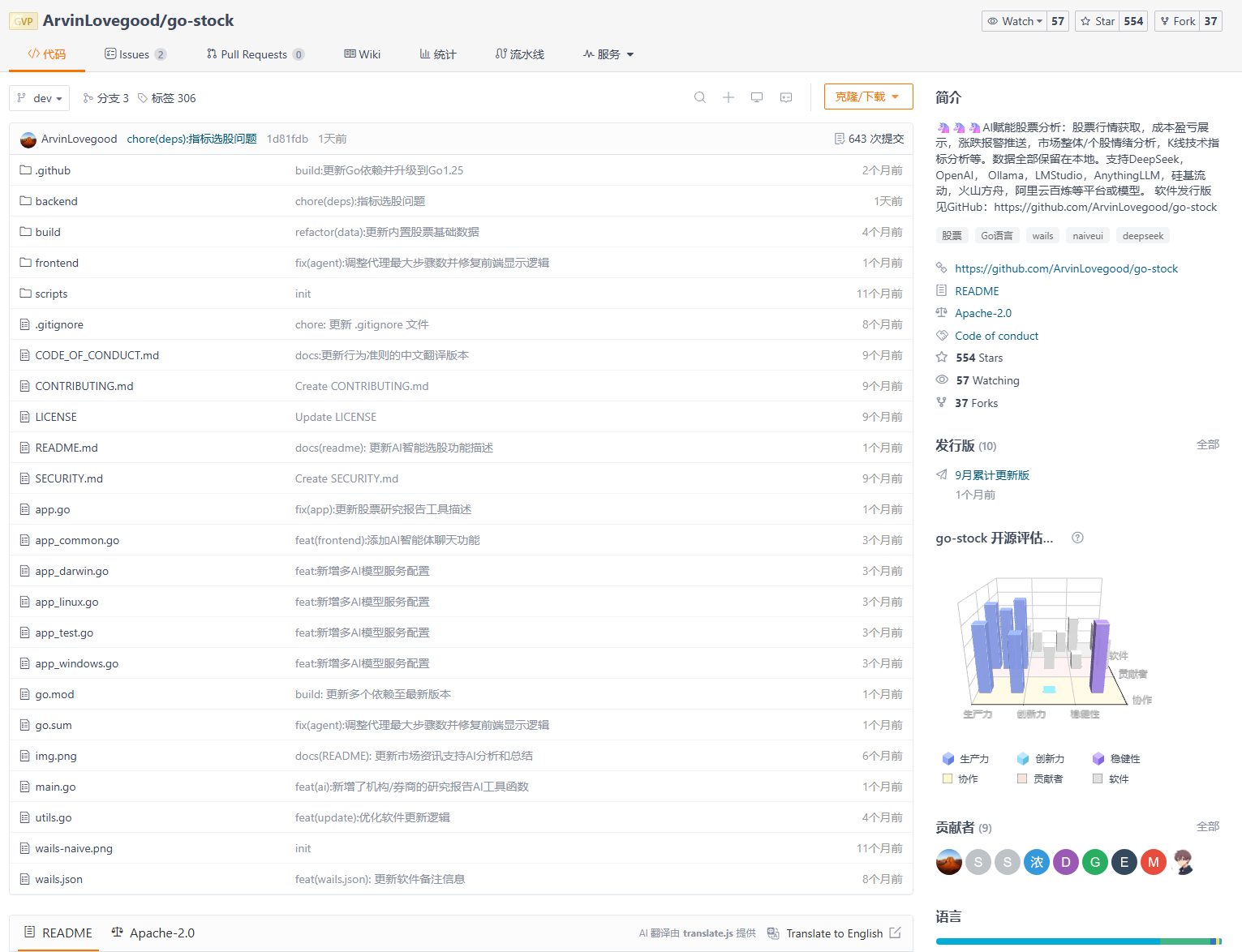 项目描述:AI赋能股票分析系统:实时获取股票行情数据,动态展示成本分布情况,推送涨跌预警提醒,提供整体市场趋势与个股情绪分析,并集成K线技术指标解析等功能。所有数据均存储于本地设备确保隐私安全。兼容DeepSeek、OpenAI、Ollama、LMStudio、AnythingLLM等AI平台,支持零一万物、智谱AI、月之暗面、阿里云百炼等主流大模型及开源框架。软件发行版详见GitHub仓库:https://github.com/ArvinLovegood/go-stock