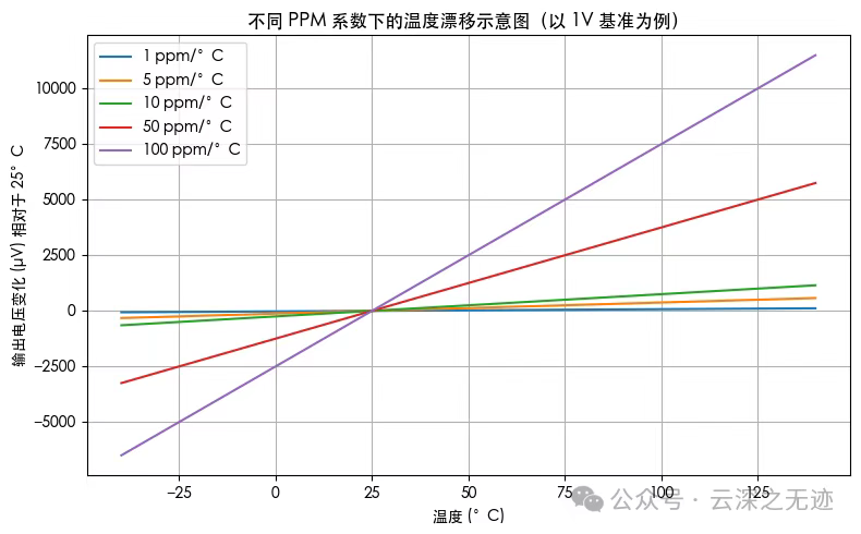 1 ppm/°C 的漂移极小,几乎是一条平线;
