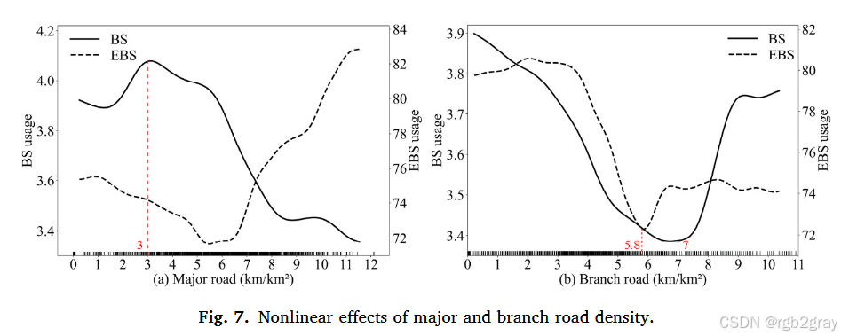 - 部分依赖图(PDP)绘制:固定其他变量不变,仅改变目标变量的值,绘制其与 BS/EBS 使用的关系曲线,直观呈现非线性特征。