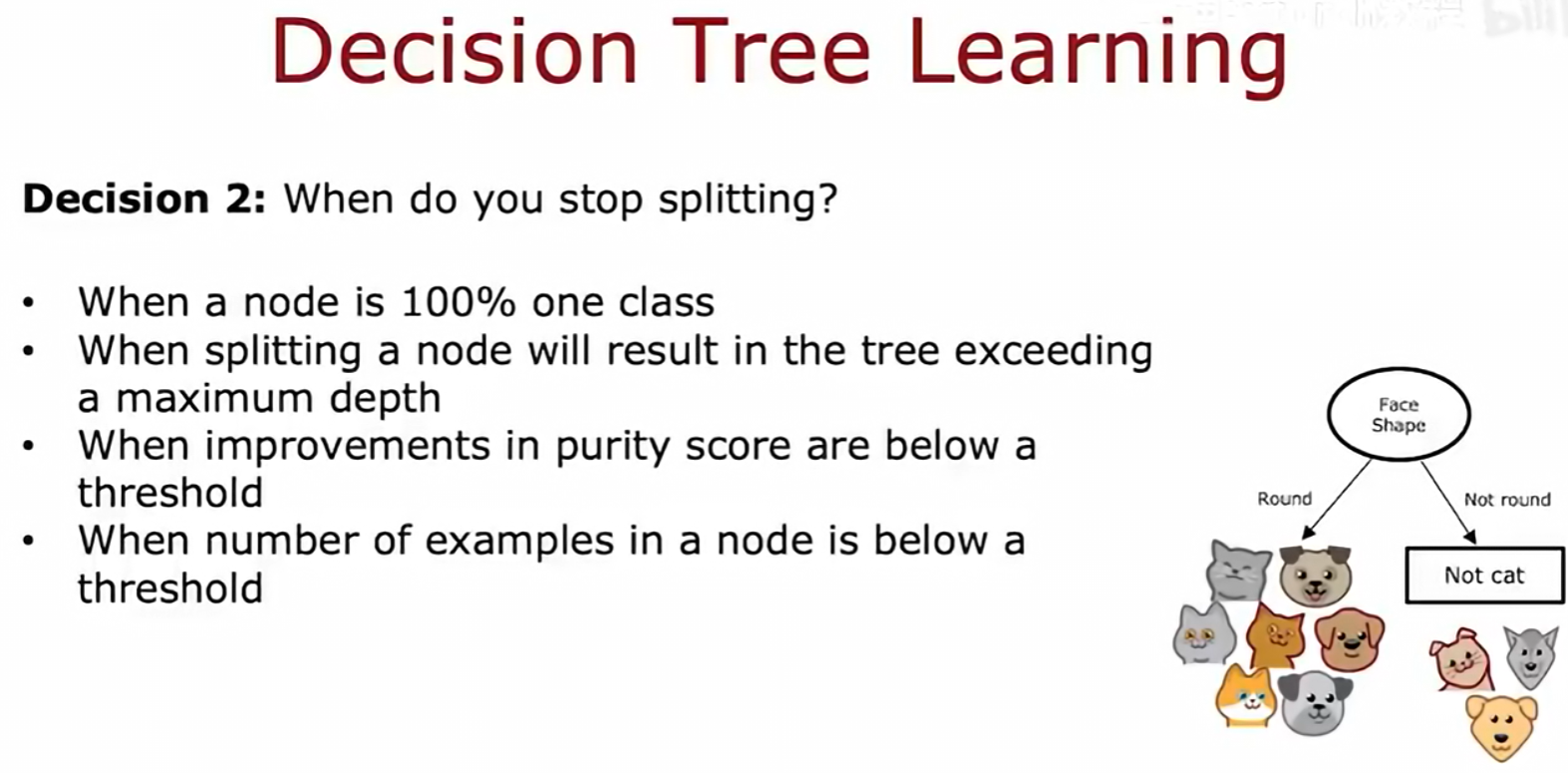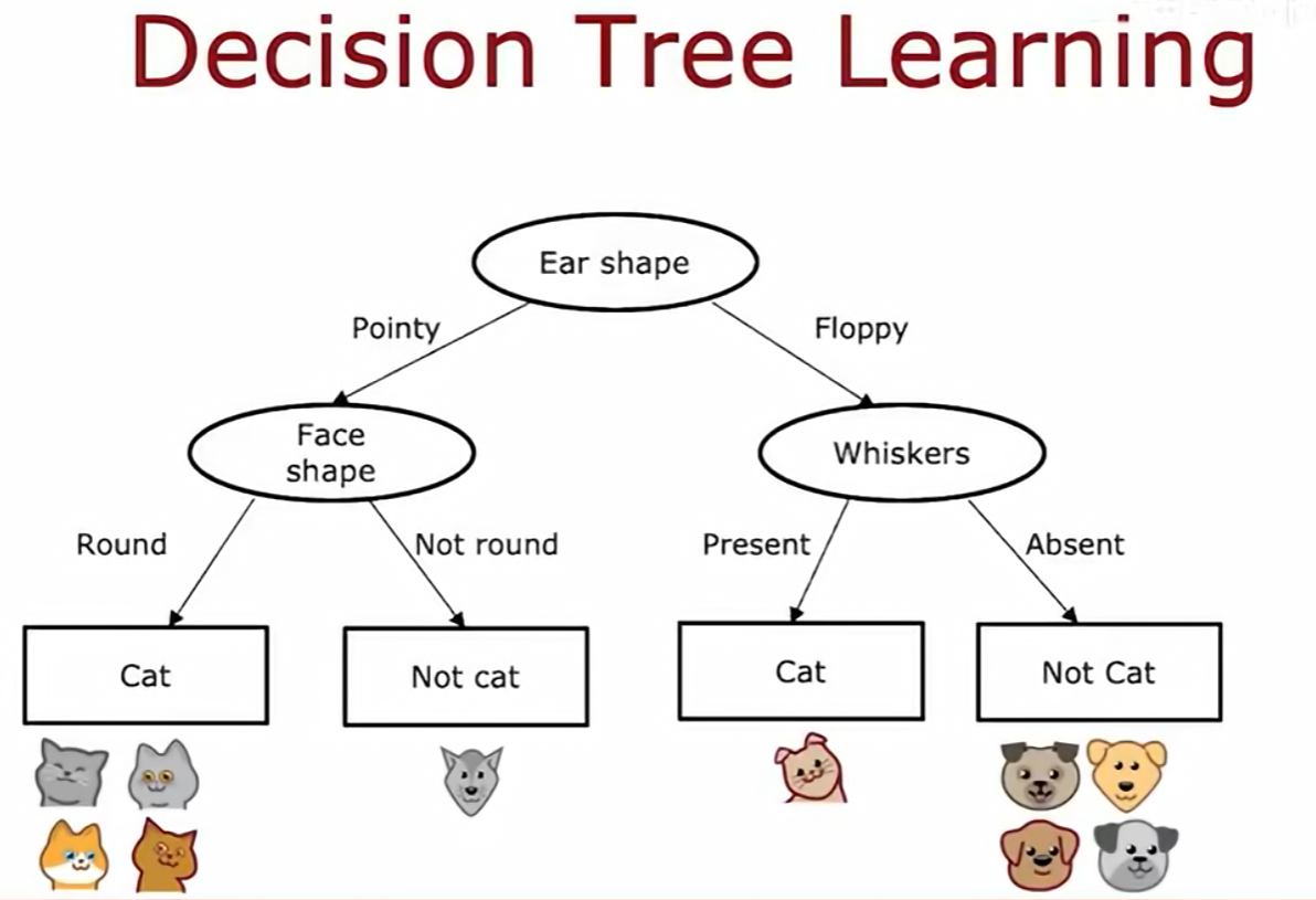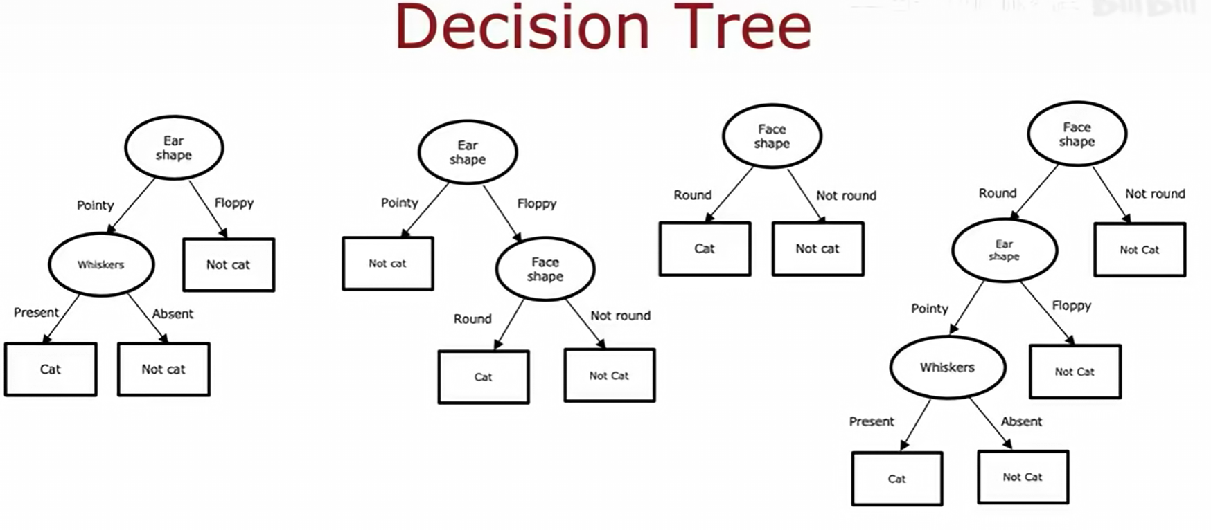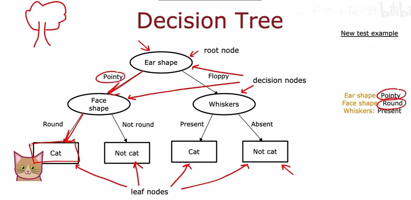 - 叶节点 (leaf nodes) :树的终点,代表最终的分类结果(Cat 或 Not cat)。