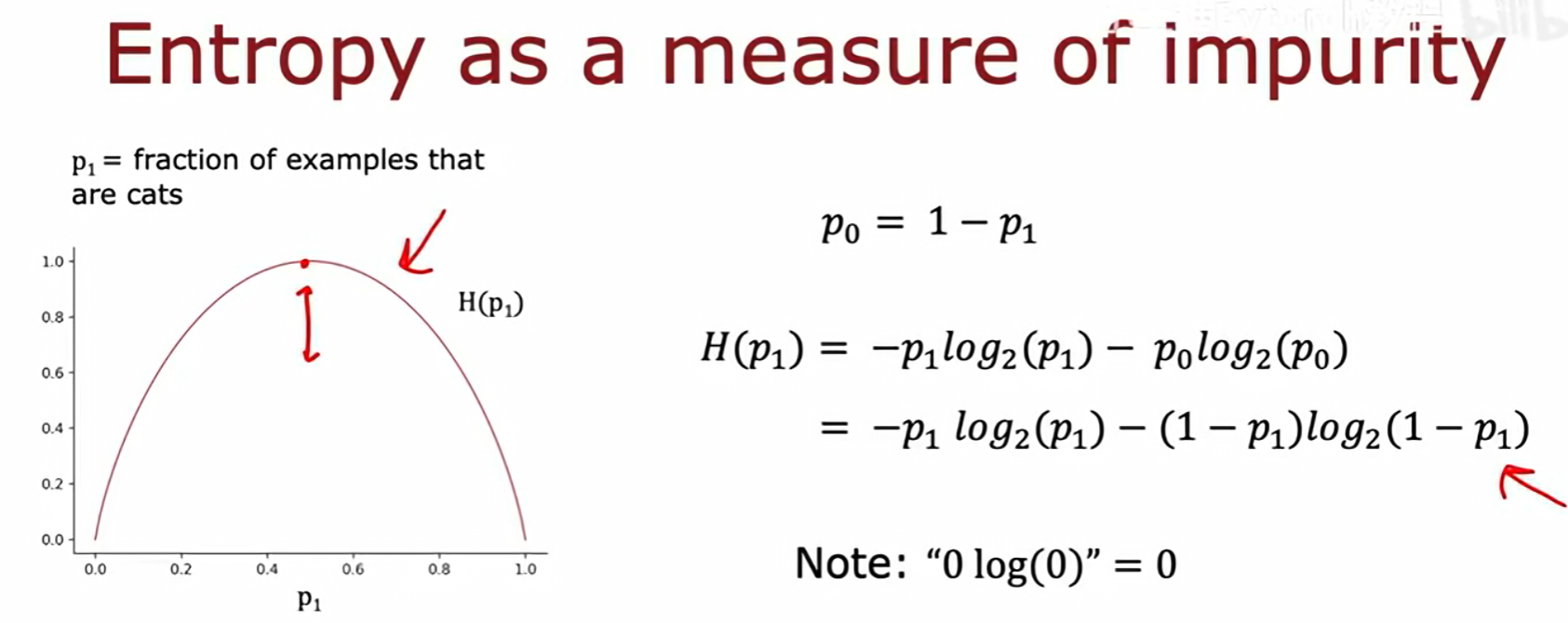 p₁=0或p₁=1),熵H(p₁)=0。 - 当节点最不纯时(