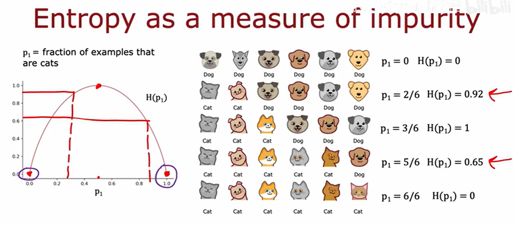 p₁被定义为节点中"是猫"的样本所占的比例。- 熵函数
