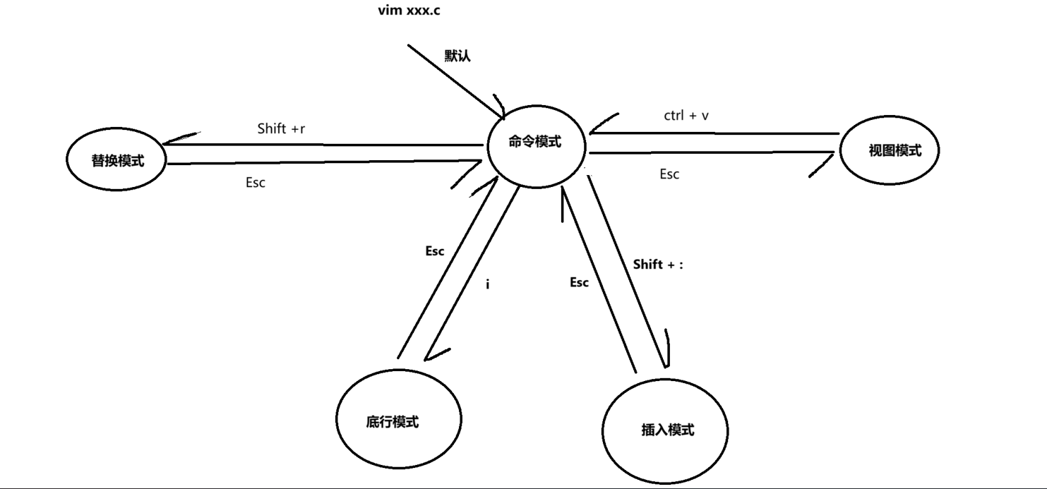 本篇文章上我们讲解vim的三种模式(其实有好多模式,⽬前掌握这3种即可),分别是命令模式 (command mode)、插⼊模式 (Insert mode)和底⾏模式(last line mode),各模式的功能区分如下: