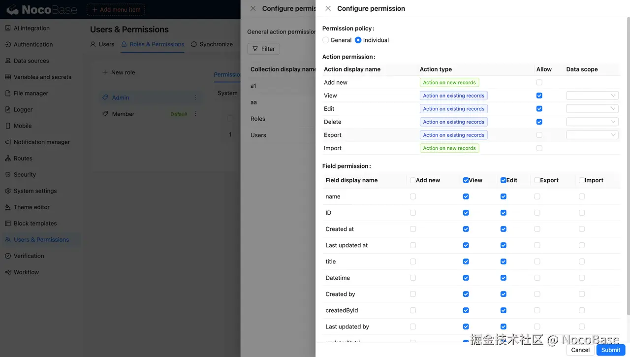 - 👉 阅读 NocoBase 官方 RBAC 设计指南 深入了解。