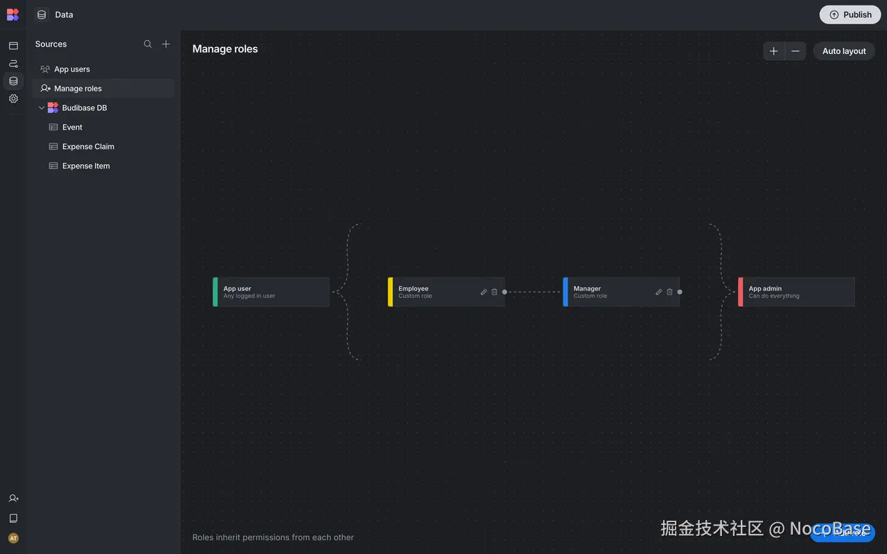 - 🟢 NocoBase 在开源产品中权限体系最完善,粒度能细到字段和条件层级,配置也可视化、直观。 支持自托管和插件扩展,适合需要细粒度权限、又想自己掌控系统的团队。