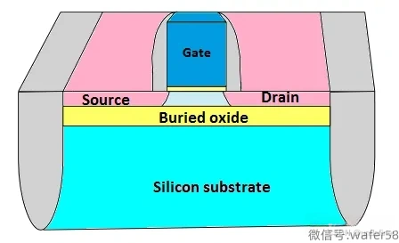 由于存在一个氧化硅(SiO2)的绝缘层,它有效地隔离了晶体管和底部的硅衬底。这种隔离减少了从有源层到基板的不希望的电流。漏电流会随着温度的升高而增加,因此在高温环境中可以显著提高芯片的可靠性。