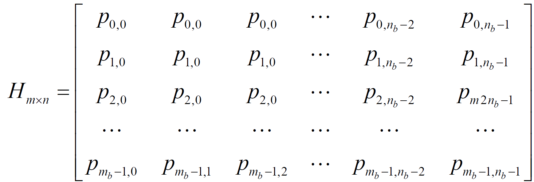式子表示一个m行n列的校验矩阵,式子中以基校验矩阵形式表示,