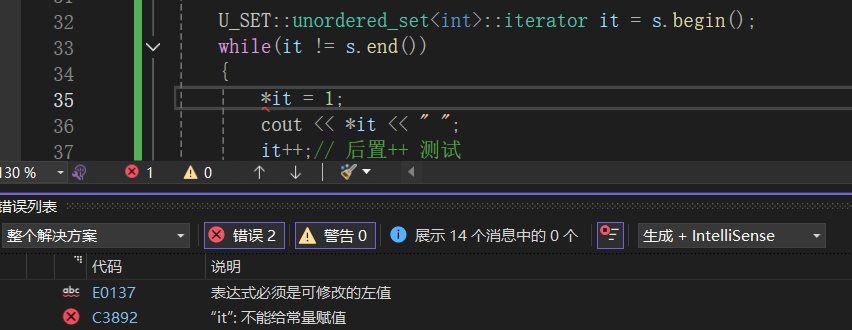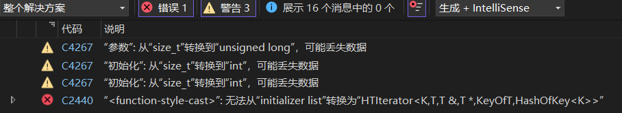 原因有些含糊,其实是我们哈希表类中Const_Iterator构造的时候发生的错误,此时的this是const HashTable*类型的,而我们迭代器类中的_ht是HashTable*类型的,导致了权限的缩小,引发了错误。