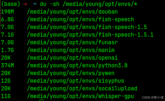 我一般一看就知道哪些可以直接动刀------比如fish-speech 环境有好几个,大概率是不用的,直接清理就好了。