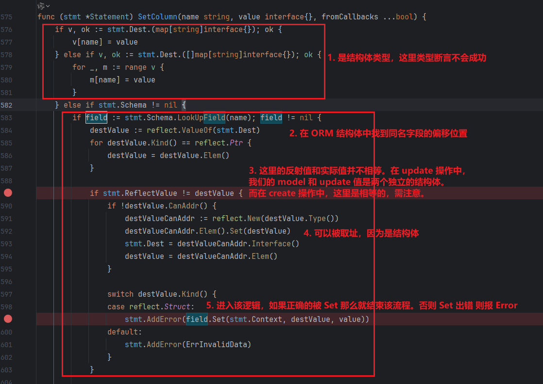 这块没明白为何要这样要求?在 SetColumn 的操作里面,dest 如果是结构体类型的话,就需要使用表对应的结构体类型才行。针对 create 类的操作确实没啥问题。而 update 操作既然已经支持了 struct/map 两种更新方式,为何在这又不支持自定义 struct 更新了呢?