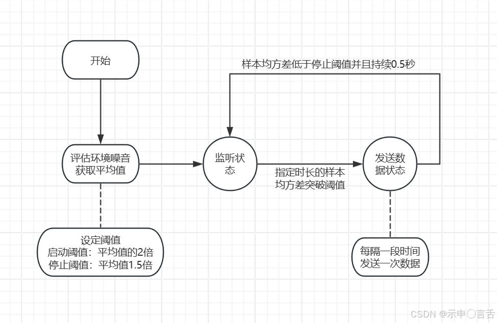 第一步,就是人声检测(VAD)了,你总得知道客户啥时候说了话,然后把它说的话发给语音识别。github上有开源的VAD库,但是我观其代码,写的很不优雅,每一帧都要new 一堆 byte [],都不考虑GC和性能,可能人家只是抛砖引玉吧。后来我自己写了一个麦克风管理的组件,其实原理相当简单,就是一直检测麦克风采样的能量值,然后通过均方差来检测能量阈值,达到某个阈值时启动数据发送,低于某个阈值并且持续一段时间时,就停止发送。