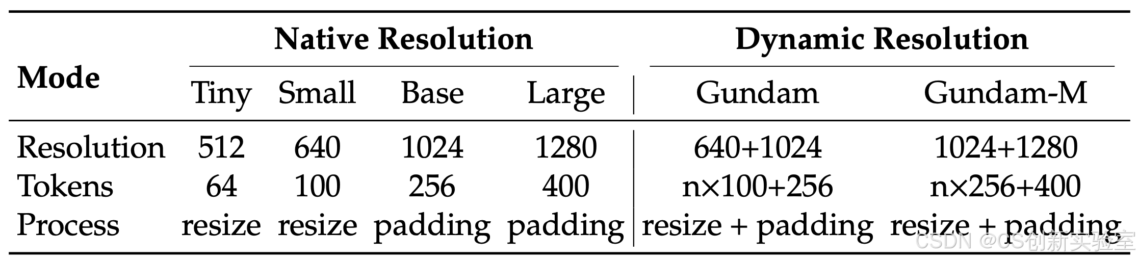 表1 | DeepEncoder的多分辨率支持特性。出于研究与应用的双重目的,我们为DeepEncoder设计了多种原生分辨率与动态分辨率模式。