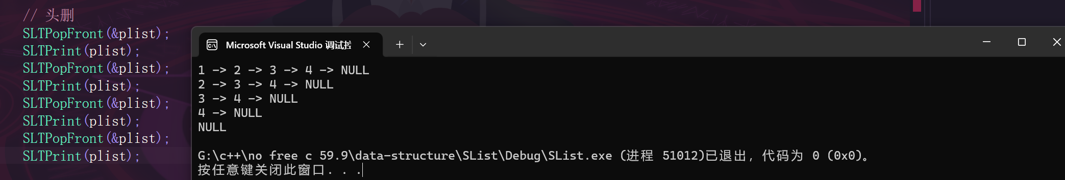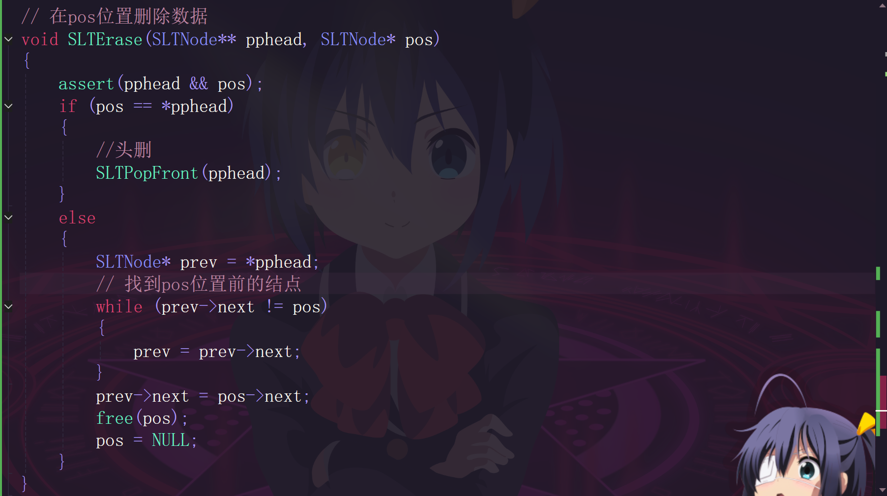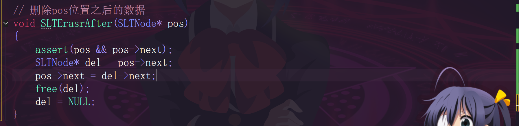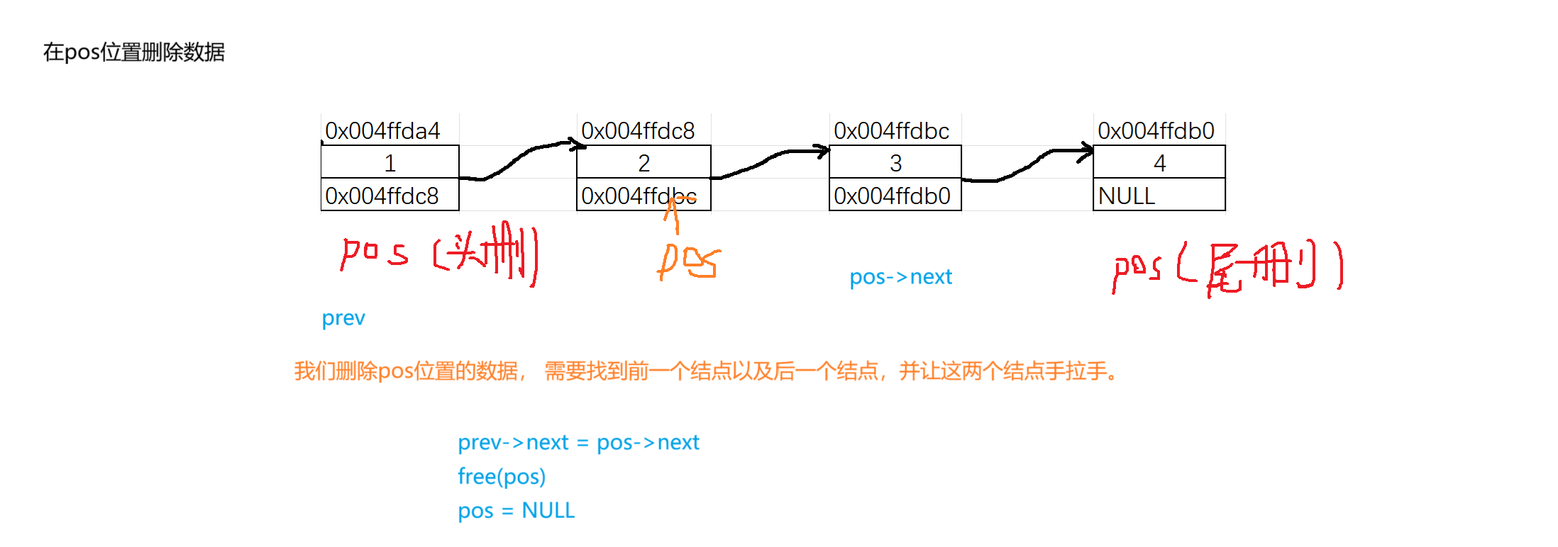 void SLTErase(SLTNode** pphead, SLTNode* pos)